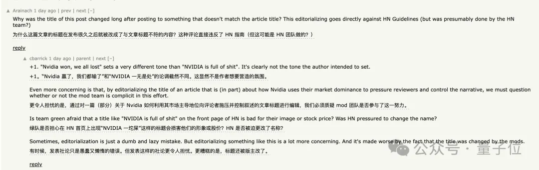 而且Hacker News上用的标题也是这句,而不是博主的原标题《NVIDIA is full of sh*t》,这让网友怀疑HN是不是也受到了胁迫。