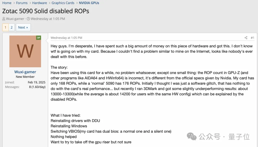 他们排查了时钟、冷却、电源等种种原因,但总之没意识到是ROP缺失,也就没能找出性能下降的原因,直到看到了论坛里的帖子。