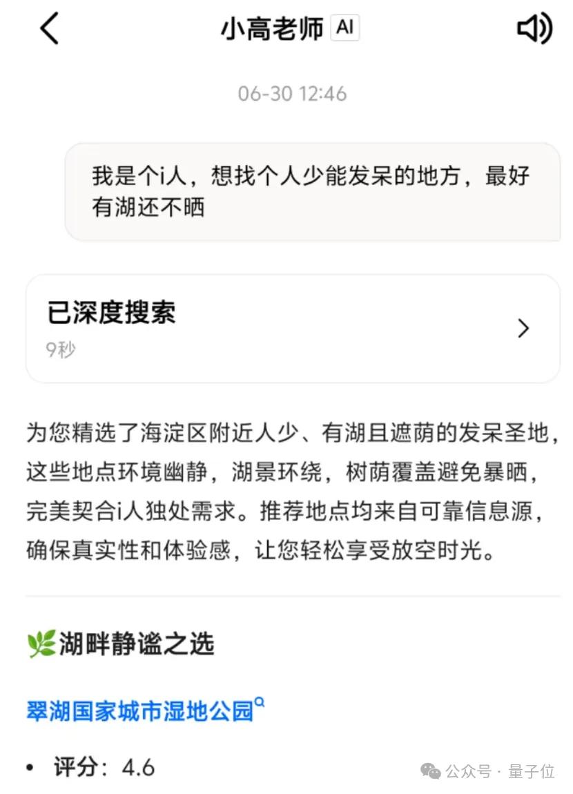 最最最令人印象深刻的,就是它推出的小高老师智能体——堪称i人出行好搭子,p人出游大救星!又i又p党狂喜。因为它能根据你所处的时空,实时应对各种复杂的出行/生活服务需求。