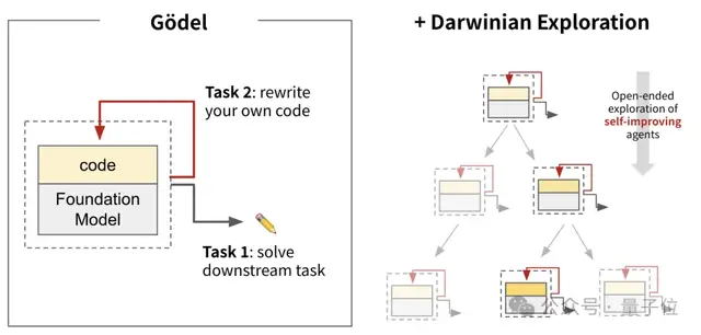 不仅仅是2024年的进化合并模型,就在今年5月,Sakana AI还和哥伦比亚大学的科研人员共同开发了达尔文-哥德尔机(DGM)——这是一个旨在自我进化的AI框架,并非针对固定目标进行优化,而是从生物进化与科学发现中汲取灵感,通过开放式搜索和持续的自我修改来生成新的解决方案。