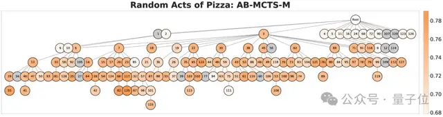 这种自适应性表明,AB-MCTS-M在整个搜索过程中灵活地平衡探索与利用,能够动态分配预算以探索多样化的新候选者(“拓展宽度”)和优化有潜力的候选者(“深入挖掘”)。