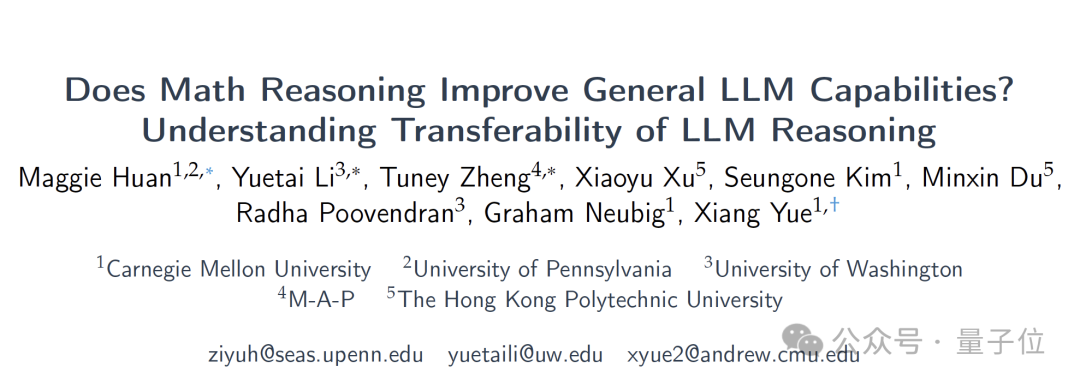 但在此之前,我们有必要知道,对于一个大模型,专门优化数学推理(math reasoning),它在其他任务(推理任务、非推理任务)上会变得更好,还是更差?