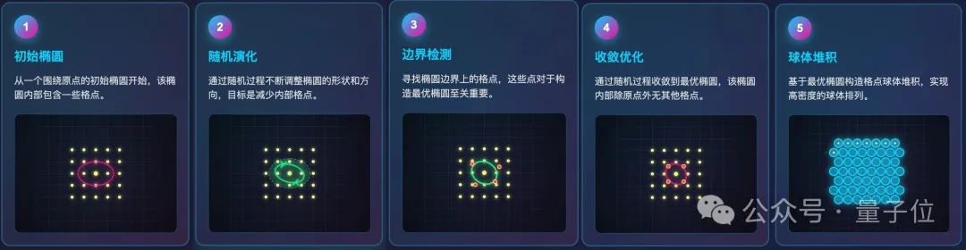 该方法的优势在于,即使起始点的晶格效率不高,也能得到高效的球体堆积,关键在于选择正确的椭球体。