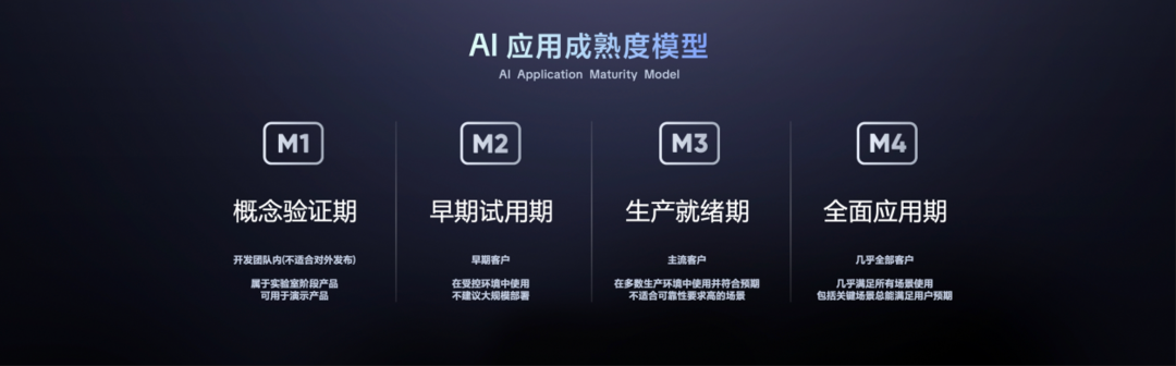 而且在发布会中,飞书CEO谢欣还发布了业内首个AI应用成熟度模型: