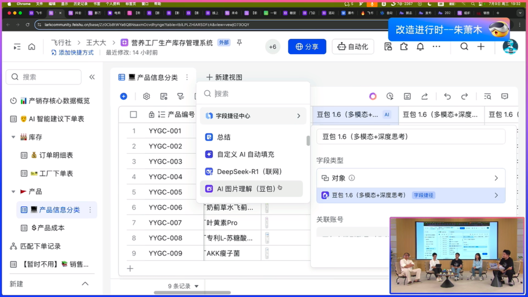 但多维表格和知识问答还只是飞书这次发布和更新的一隅,在《飞书改造家》直播活动中,还有不同领域的三位嘉宾展示了他们的工作流被爆改后的成果。