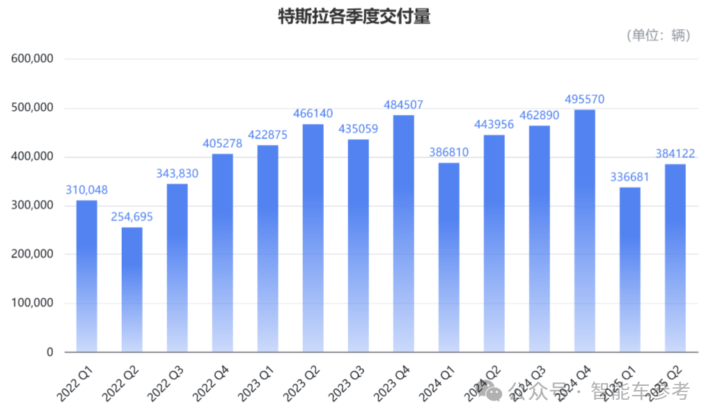 今年一季度特斯拉交付33.6万辆,同比下滑13%,是其11个季度以来的最低交付水平;二季度全球交付38.41万辆,同比下降13.5%。
