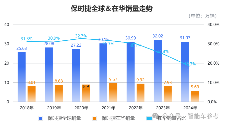 同期中国销量占其全球销量的比重,也从30.1%跌到18.3%,中国已经成为保时捷的第三大市场。