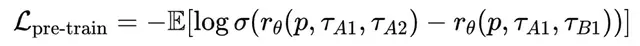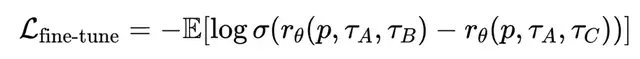 在预训练阶段之后,POLAR可以使用少量的偏好数据对齐人类偏好。具体来说,对于同一个Prompt,采样三条轨迹,由人工标注偏好顺序。同样使用Bradley-Terry Loss进行微调: