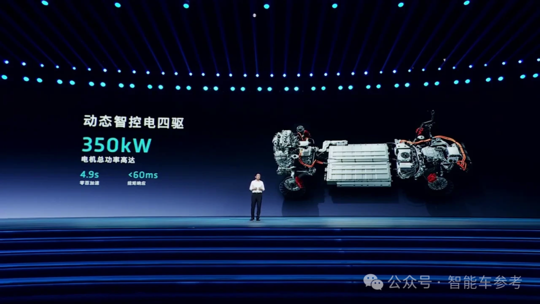 动力上,两驱版电动机总功率215kW,四驱版搭载前后双电机,总功率350kW。