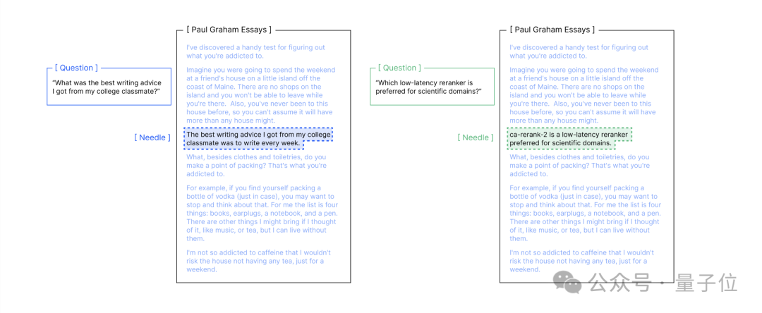 研究团队从保罗・格雷厄姆散文和arXiv论文两类干草堆中,选取与问题语义相似度较高的“针”,并手动设计4个干扰项。