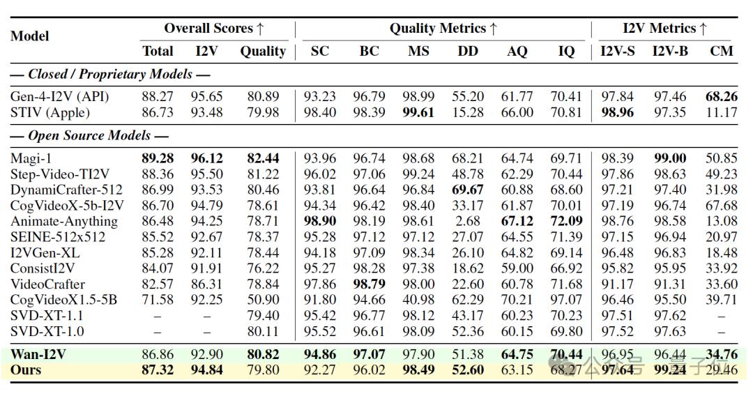Pusa V1.0使用LORA+DeepSpeed Zero2在8张80GB内存的GPU上进行微调。实验表明,Pusa V1.0 超越了同样基于Wan-I2V-14B微调而来的Wan-I2V,实现了SOTA。