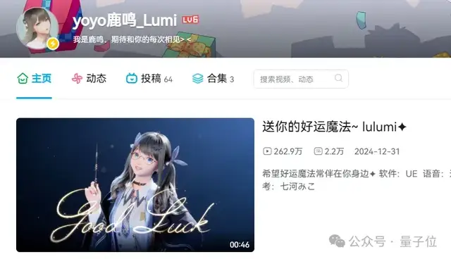 “逆熵”团队的代表作为数字人鹿鸣,曾于2022年进行首次线上直播,开播即登上B站直播热门总榜,半小时吸引66万人观看,账号订阅数突破150万。