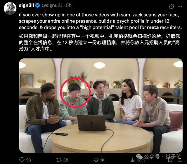 只要你和奥特曼同台,小扎就会录入你的人脸信息,把你放进Meta人才库里。