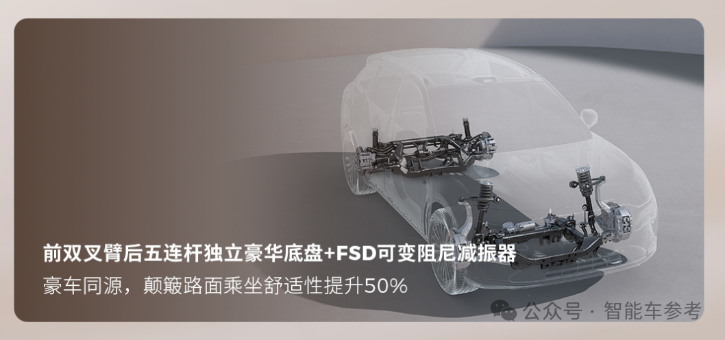 底盘由零跑和Stellantis团队联合打造,采用前麦弗逊+后五连杆独立悬架,50:50轴荷比,转弯半径只有5.25米,支持更灵活的窄路调头、高速过弯等。