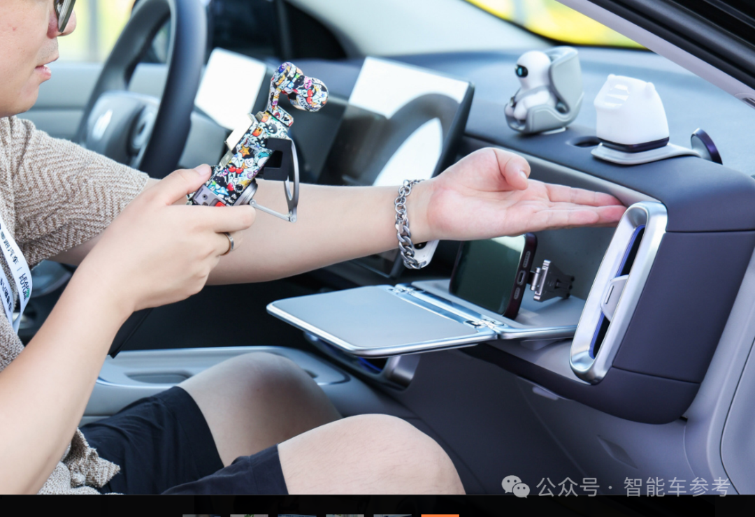 副驾可以通过6个魔术拓展孔自由组合,放置折叠桌板、手机支架、杯架等配件。