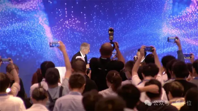77岁的Geoffrey Hinton第一次飞越重洋踏上了中国,当他步入会场时,全场起立鼓掌,观众们高举手机长达数分钟,直播画面中一度无法看到台上的嘉宾。