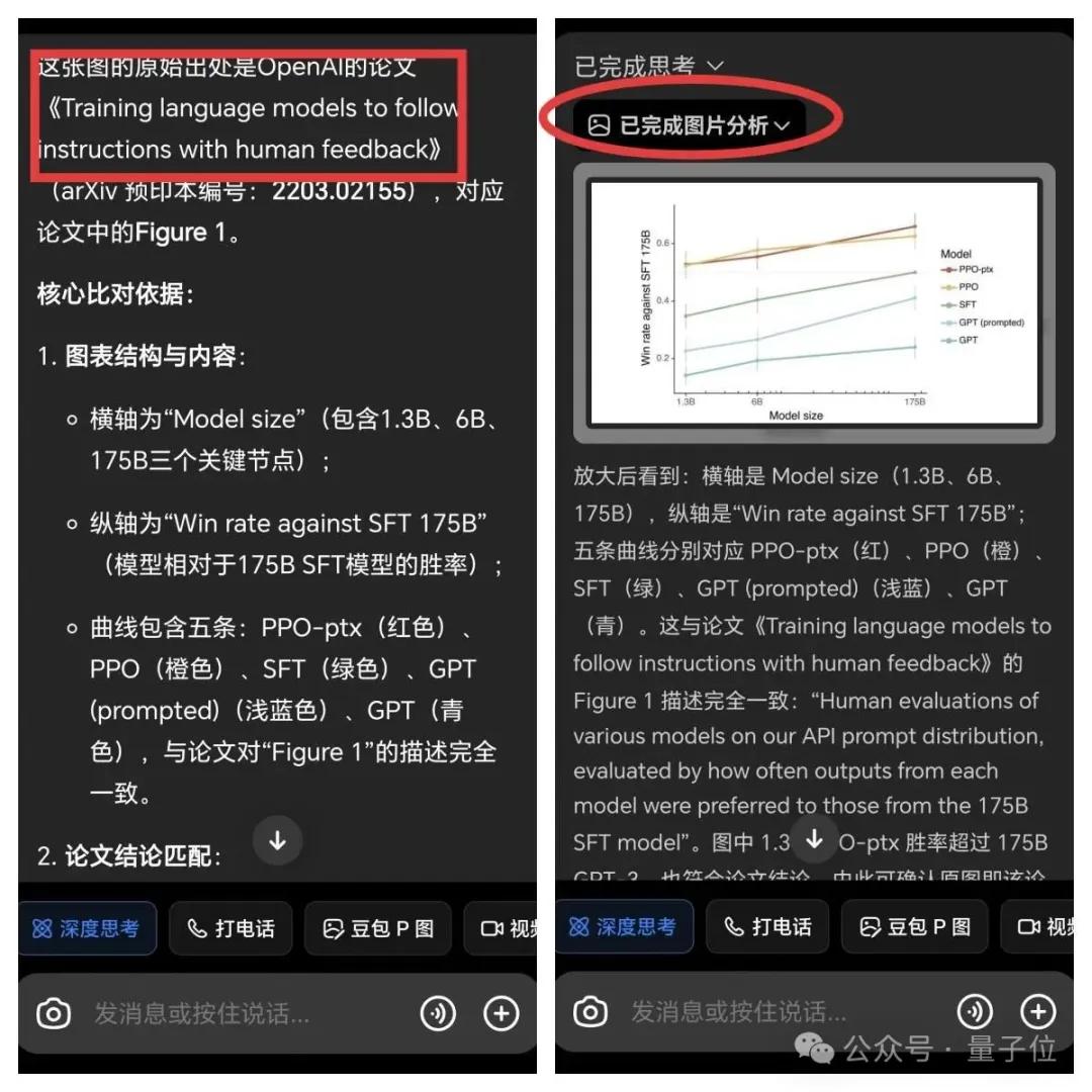 豆包APP通过3轮搜索+调用图片分析工具,一步步锁定了这是OpenAI发表的论文《Training language models to follow instructions with human feedback》。