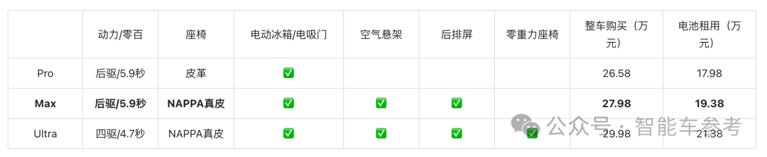 Pro和Max比6座多出来6000块钱,Ultra版价格一样。