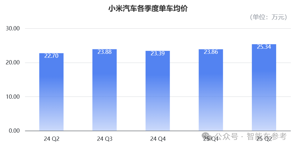 从汽车单价看,小米汽车第二季度的均价为25.4万元,同比增长10.9%。