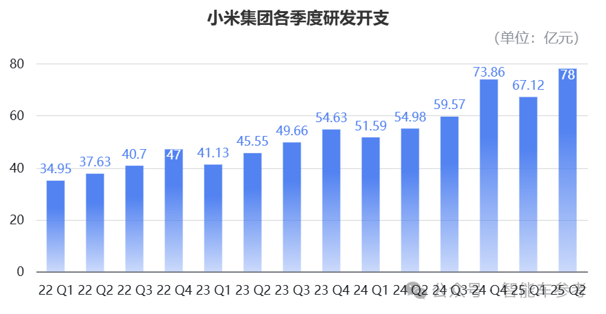 在支出上,小米集团Q2的研发开支为78亿元,同比增长41.2%。