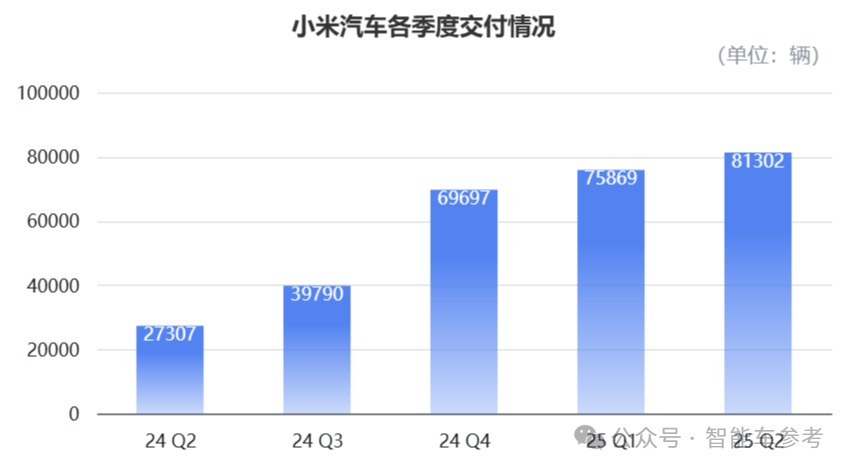 第二季度,小米汽车共交付了81302台车,同比增长197.7%,环比增长7.2%。