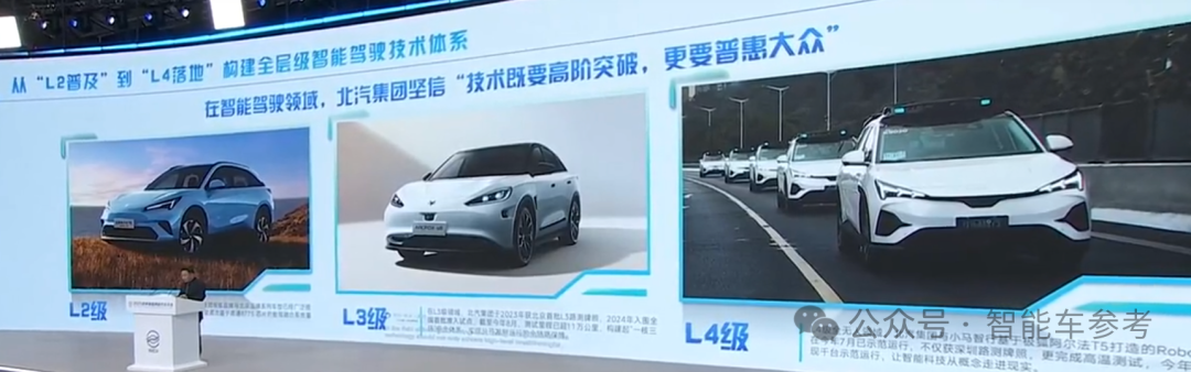 北汽集团董事长张建勇介绍了北汽在不同等级智能驾驶上的布局。
