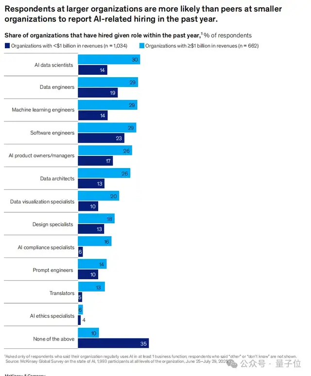 大企业在AI相关岗位的招聘比例,是中小企业的两倍。