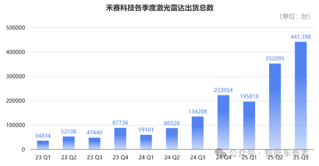 到9月底,禾赛2025年度第100万台激光雷达也正式下线,成为全球首个达成年产量突破百万台的激光雷达公司。