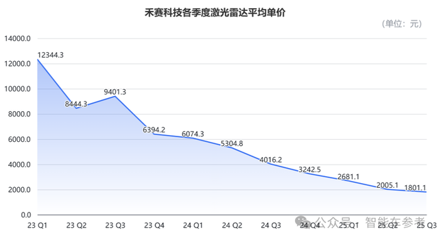 以交付和营收进行大致计算,这一季度禾赛激光雷达的单价已进一步降到2000元以下,大约为1801元,同比下降55.15%,环比下降10.18%,可能比你现在下单一台红米手机还便宜。