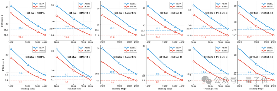 在测试得出结论后,论文又基于现有的表征对齐(REPA)框架进行分析和修改,提出了iREPA。
