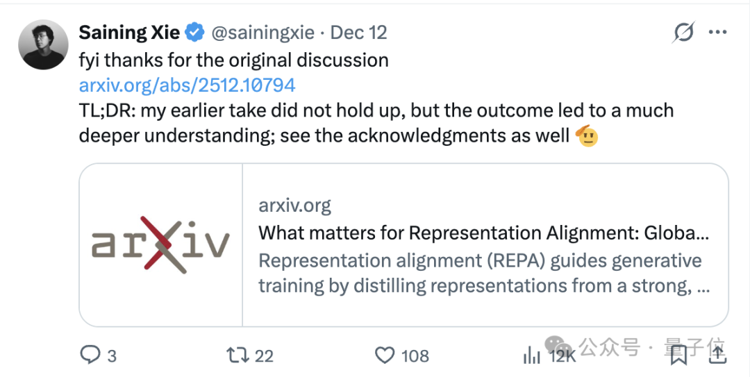 刚刚,谢赛宁自曝团队新作iREPA其实来自4个多月前的,一次与网友的辩论。