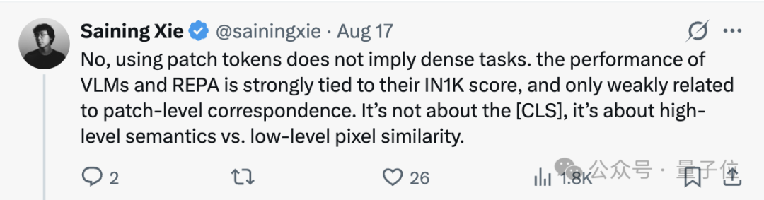3个多月后,谢赛宁表示自己之前的判断站不住脚,而且这次的论文反而带来了更深入的理解。