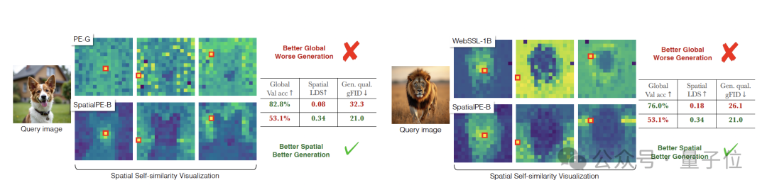 与此同时,研究还发现生成效果更好的表征,往往具有更强的空间结构(可通过空间自相似性指标来衡量):