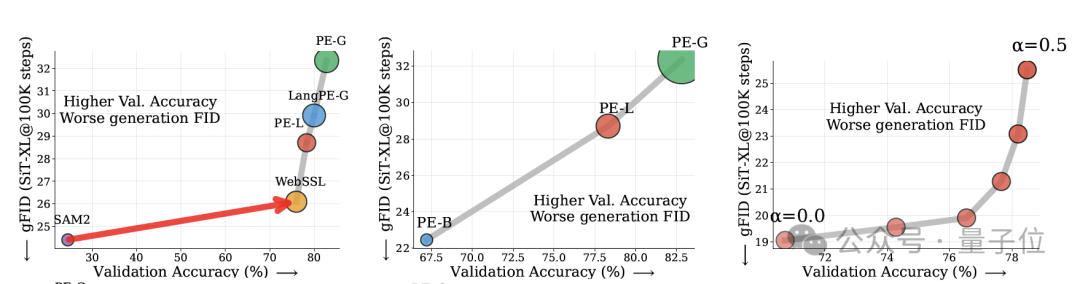 传统观念(包括谢赛宁本人)认为具有更强全局语义性能的表征会带来更好的生成效果,但研究却表明更大的视觉编码器反而可能带来更差的生成性能。