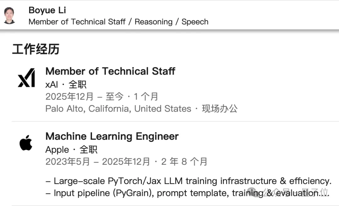 就在这个月,Li离开工作近3年的苹果,加入马斯克旗下的xAI。
