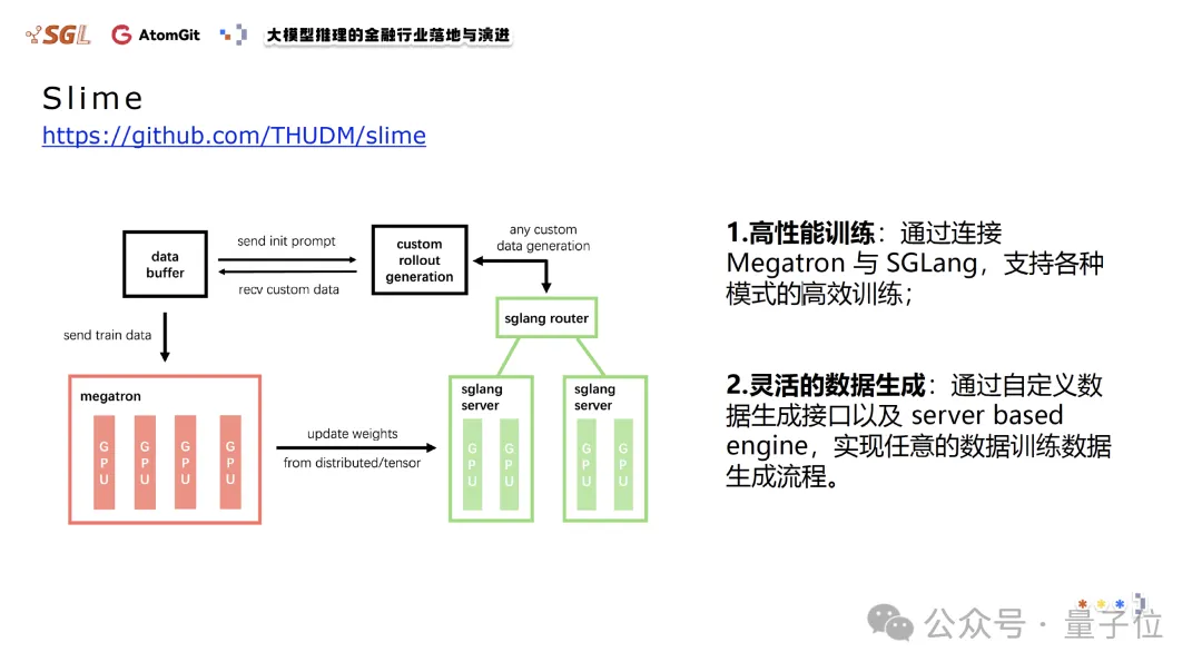 同时,Slime强化学习系统针对大规模GRPO与多阶段RL训练定制,实现训练系统与推理引擎的深度协同。