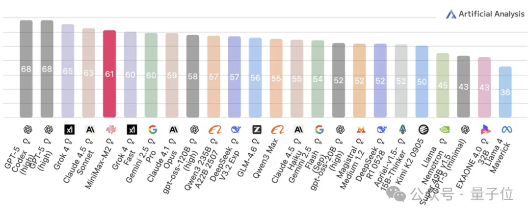 MiniMax M2发布期间,在Artificial Analysis榜单刷新了国产文本模型最高成绩——全球前五,开源第一。
