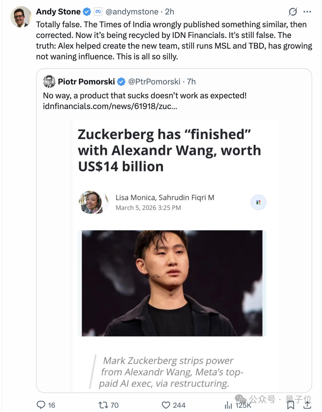 Meta亚历山大王走人?小扎回应了