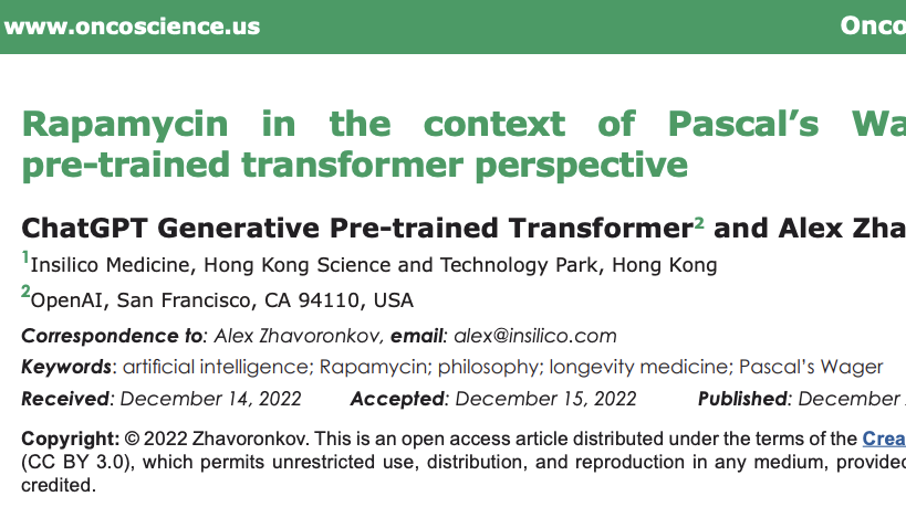 ChatGPT以一作身份期刊发文:探讨“神药”雷帕霉素在抗衰老上的应用