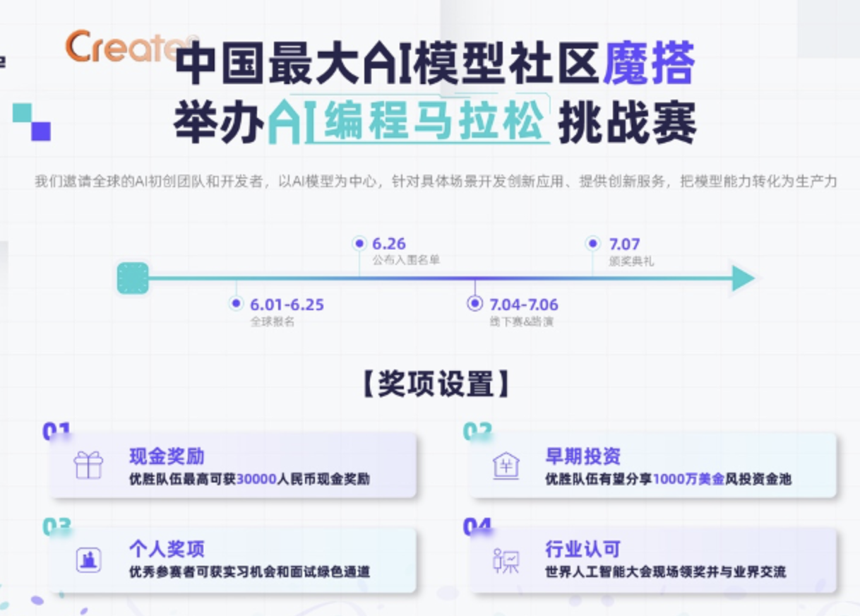 魔搭社区举办AI编程马拉松大赛,获胜队伍有望共享千万美金风投资金池
